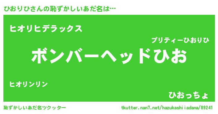 | ヘコむあだ名 | 『つくし』『ひおもー』『ひお太郎』 |