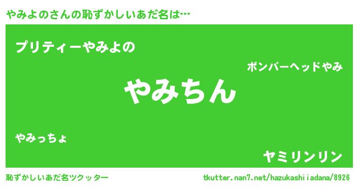 | ヘコむあだ名 | 『やみよの(爆)』『やみふぇ~』 |