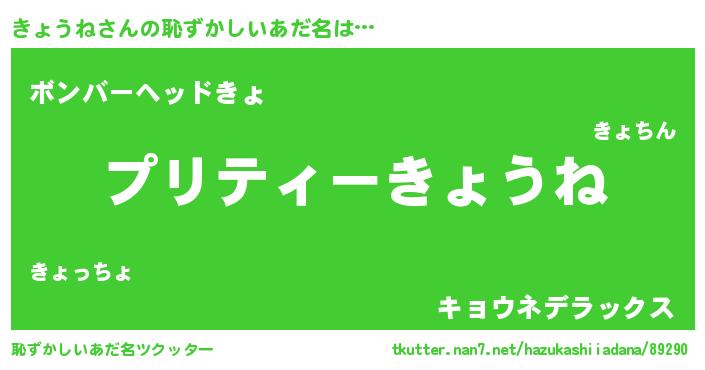 | 意味不明あだ名 | 『ペロリンきょうね』『自称きょうね』 |