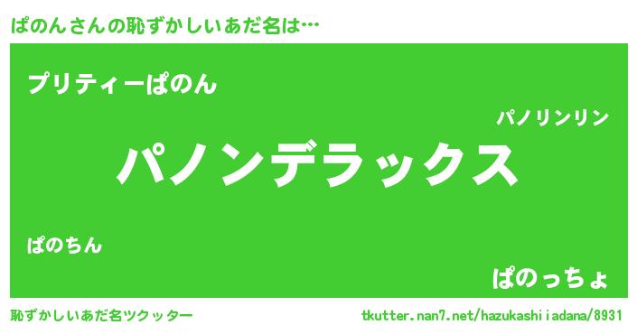 | ヘコむあだ名 | 『ぱのにー』『酢こんぶ』『ぱのっ子』 |