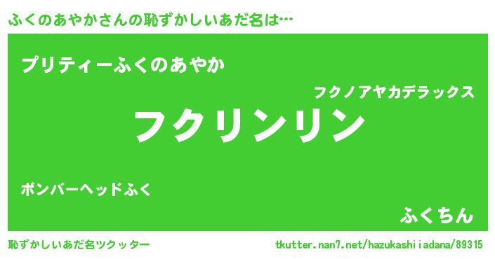 | 欧米人風あだ名 | 『ウサインふくのあやか』 |