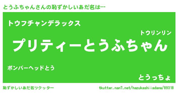 | ヒーロー風カッコイイあだ名 | 『スーパートウフチャン』『仮面トウダー』 |