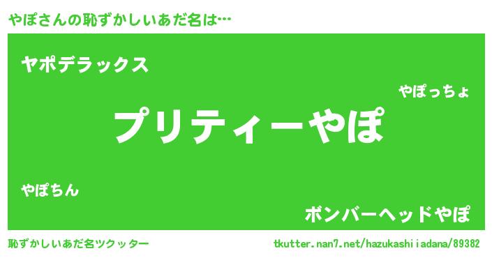 | ヘコむあだ名 | 『やぽにー』『酢こんぶ』『やぽ(笑)』 |
