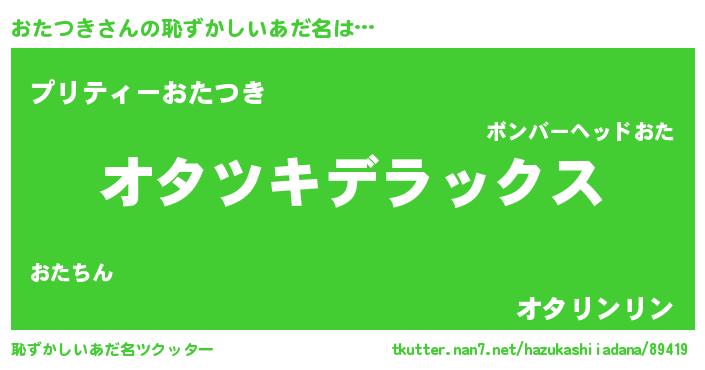 | 意味不明あだ名 | 『住所不定無職おたつき(12歳)』 |