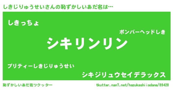 | ポケモン風あだ名 | 『ヒシキジリュウセイ』『シキジダネ』 |