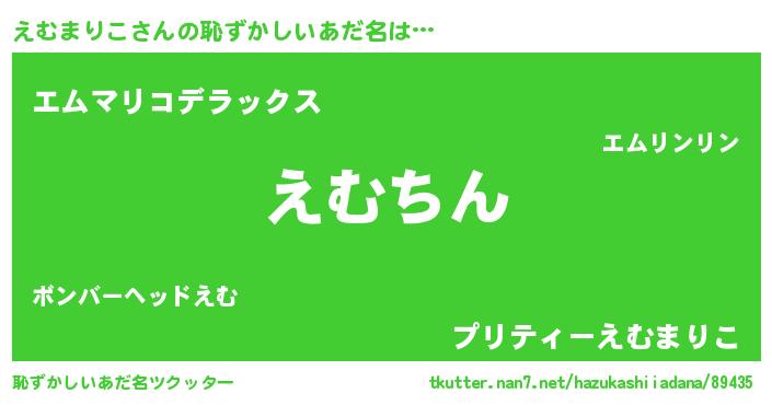 | 男性向けラノベタイトル風あだ名 | 『この素晴らしい世界にえむまりこを!』 |
