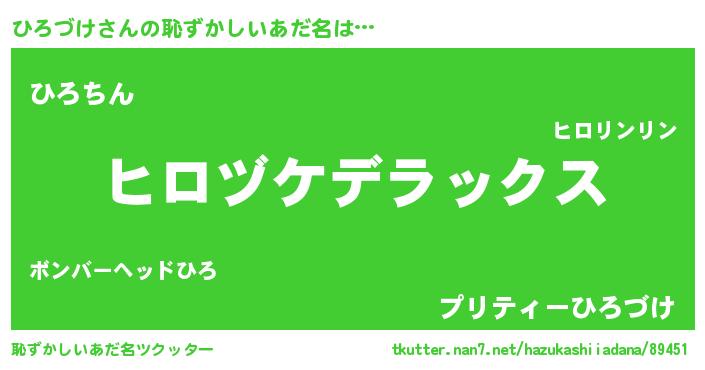 | 男性向けラノベタイトル風あだ名 | 『ひろづけに滅ぼされるだけの簡単なお仕事です』 |