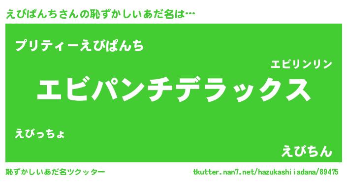 | 意味不明あだ名 | 『自称えびぱんち』『ペロリンえびぱんち』 |