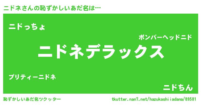 | ヘコむあだ名 | 『レバニラ』『ニドネ(笑)』『ニドお』 |