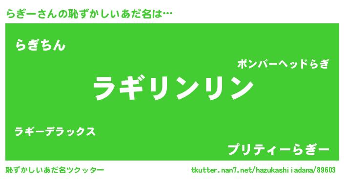 | ヘコむあだ名 | 『らぎっちょ』『らぎー(笑)』『牛乳』 |