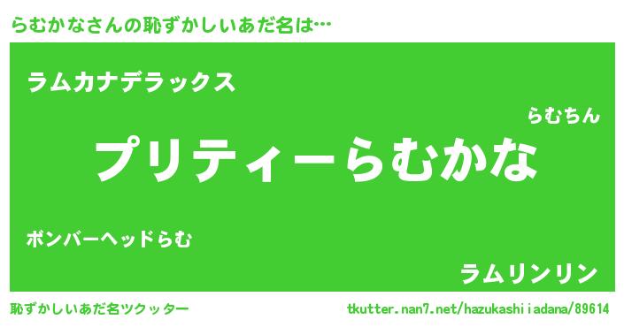 | 男性向けラノベタイトル風あだ名 | 『らむかなの憂鬱』『ラムカナスレイヤー』 |