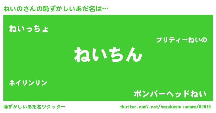 | 意味不明あだ名 | 『永久保存ねいの』『ねいのフォーエバー』 |