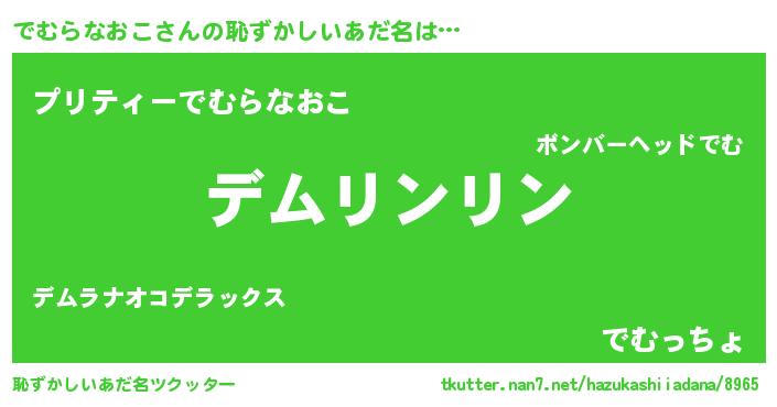 | ヘコむあだ名 | 『でむっぺ』『でむにー』『牛乳』 |