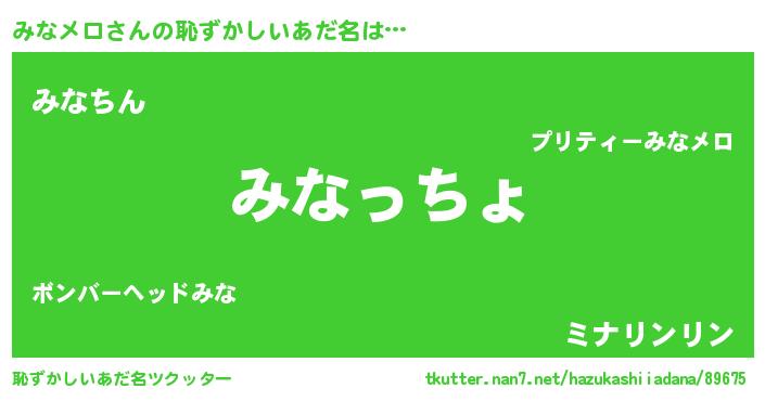 | ポケモン風あだ名 | 『ミナメダネ』『メロミッナ』 |