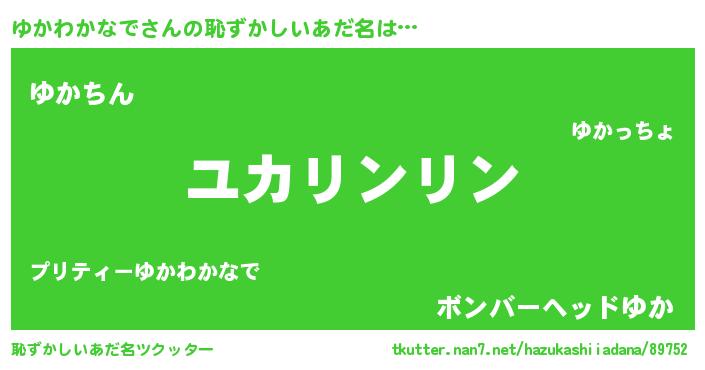 | 女子向けラノベタイトル風あだ名 | 『ゆかわかなでは平凡を望む』 |