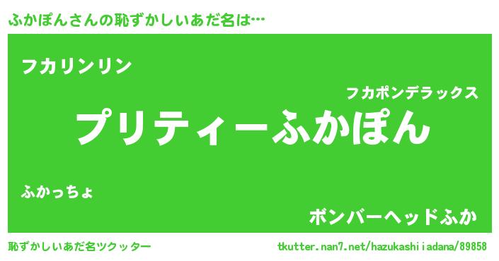 | ヘコむあだ名 | 『ふかもー』『ふかっちょ』 |