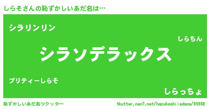 | ヒーロー風カッコイイあだ名 | 『仮面シラダー』『究極戦士シラソ』 |