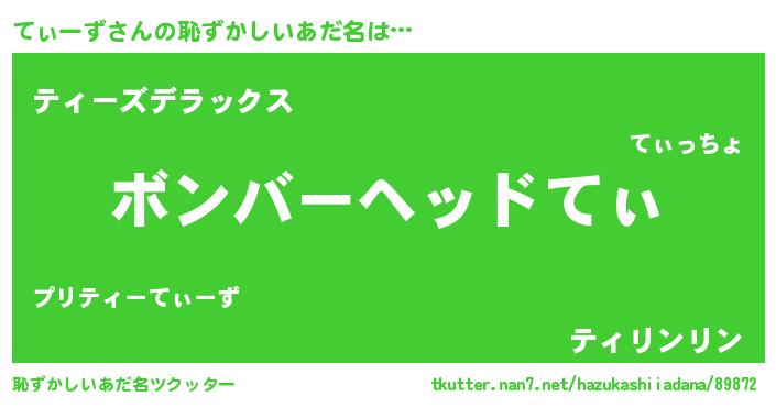 | ヘコむあだ名 | 『てぃ太郎』『豆乳』『てぃにゅー』 |