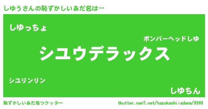 | 意味不明あだ名 | 『自称しゆう』『しゆうフォーエバー』 |