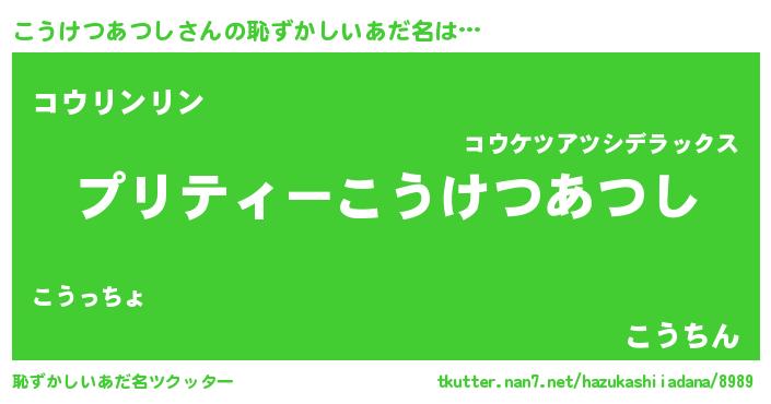 | 男性向けラノベタイトル風あだ名 | 『こうけつあつしの憂鬱』 |