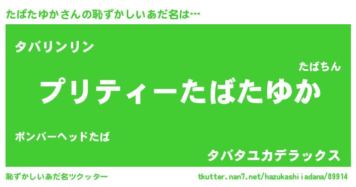 | ヒーロー風カッコイイあだ名 | 『スーパータバタユカ』『炎刃騎士タバ』 |
