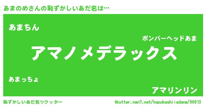 | 意味不明あだ名 | 『自称あまのめ』『なめこ科あまのめ属』 |