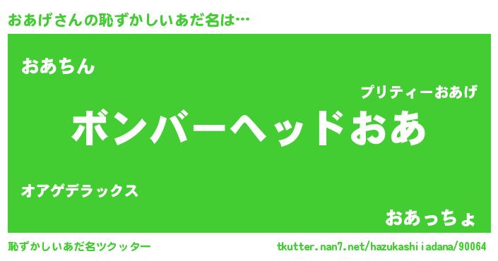 | ヒーロー風カッコイイあだ名 | 『正義の使者おあげ』『ネオオアゲ』 |