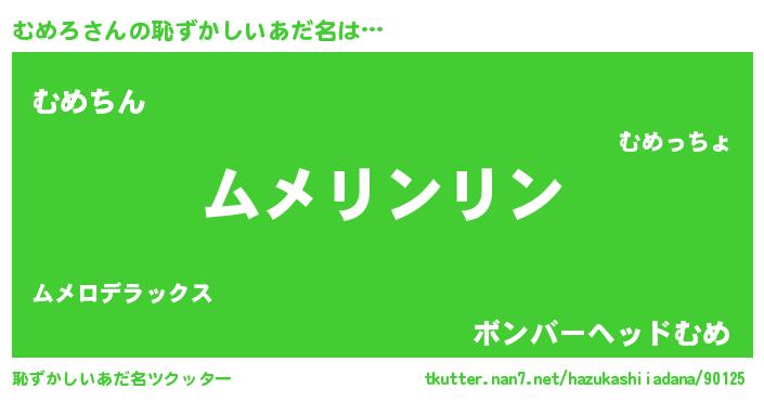 | 意味不明あだ名 | 『ヨモギ科むめろ属』『永久保存むめろ』 |