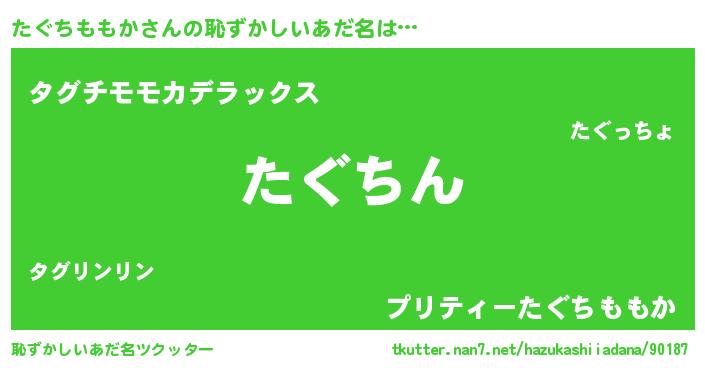 | ヘコむあだ名 | 『たぐちももか(爆)』『たぐっふぃ~』 |