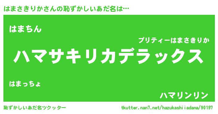 | ヘコむあだ名 | 『はまさきりか(苦笑)』『はまっ子』 |