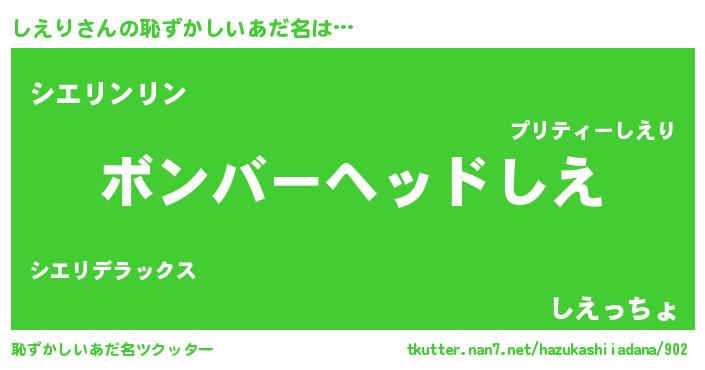 | 意味不明あだ名 | 『眠気覚ましガムしえり味』『自称しえり』 |