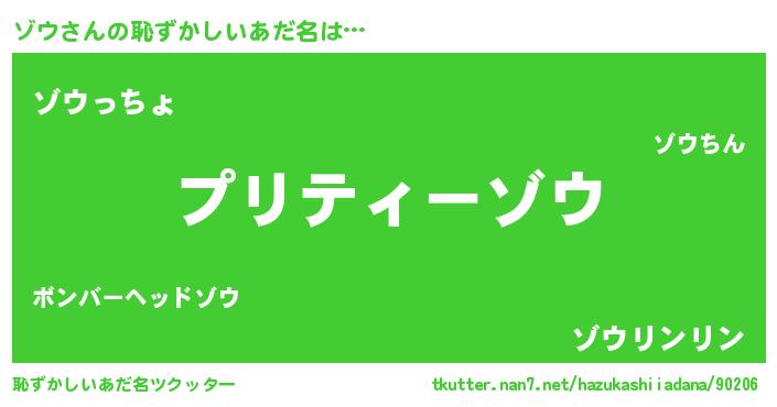 | ポケモン風あだ名 | 『ゾウチュウ』『ゾウダネ』『ヒゾウ』 |