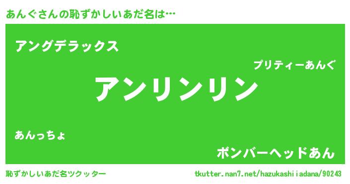| 意味不明あだ名 | 『とにかく怪しいあんぐ』『自称あんぐ』 |