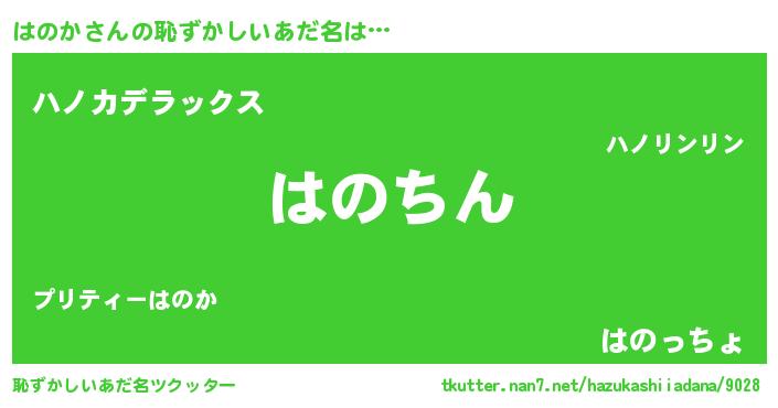 | ヘコむあだ名 | 『はのか(苦笑)』『牛乳』『はのを』 |