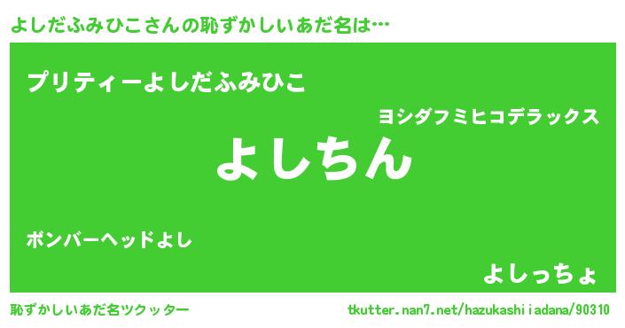 | ヘコむあだ名 | 『よしだふみひこ(笑)』『よしもー』 |
