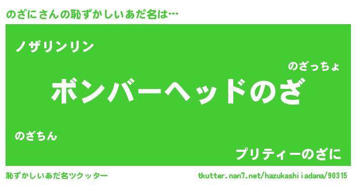 | ヘコむあだ名 | 『のざぷりん』『のざもー』 |