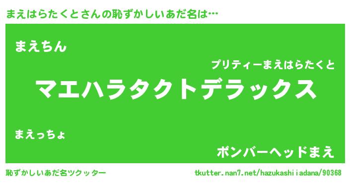 | ヘコむあだ名 | 『まえはらたくと(震え声)』『まえにゅー』 |