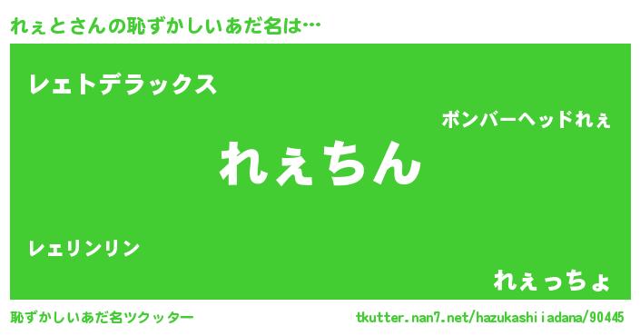 | ヘコむあだ名 | 『れぇと(爆)』『レバニラ』『れぇを』 |