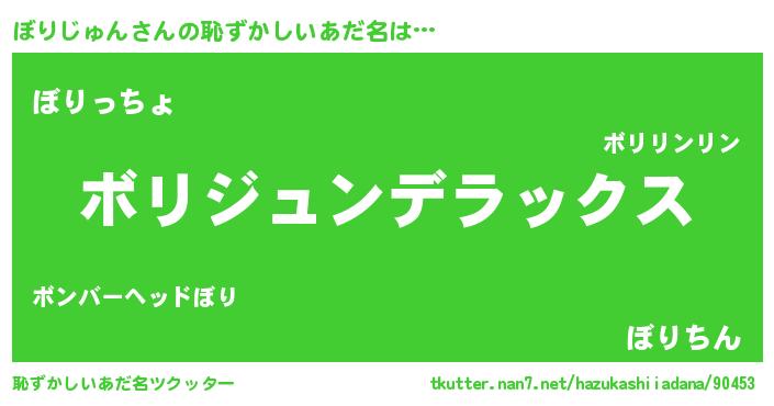 | 男性向けラノベタイトル風あだ名 | 『Re:ぼりじゅんから始める異世界生活』 |
