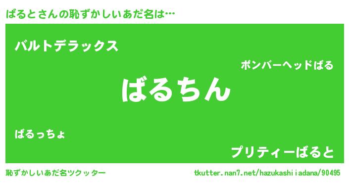 | 男性向けラノベタイトル風あだ名 | 『ばるとに滅ぼされるだけの簡単なお仕事です』 |