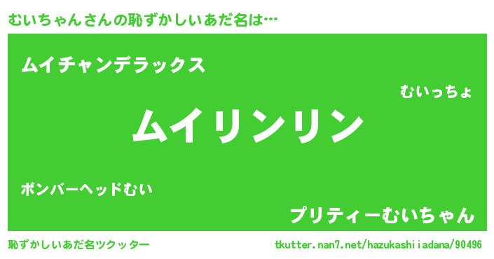 | 男性向けラノベタイトル風あだ名 | 『転生したらむいちゃんだった件』 |