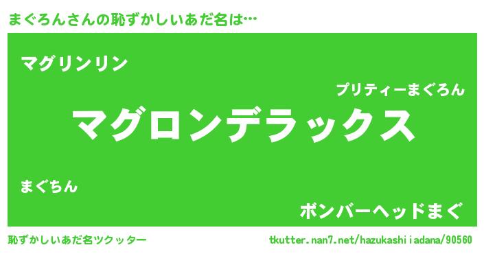 | 男性向けラノベタイトル風あだ名 | 『まぐろん~年齢イコール彼女いない歴の魔法使い~』 |