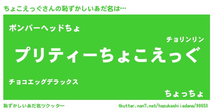 | 胡散臭い通販商品みたいなあだ名 | 『必ず成功するブレスレット…その名も「ちょこえっぐ」』 |