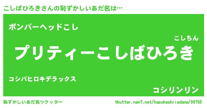 | 男性向けラノベタイトル風あだ名 | 『こしばひろき~年齢イコール彼女いない歴の魔法使い~』 |