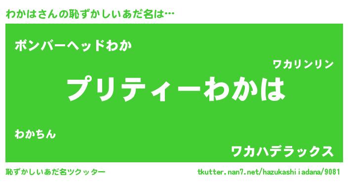 | ヒーロー風カッコイイあだ名 | 『スーパーワカハ』『友情の使者わかは』 |