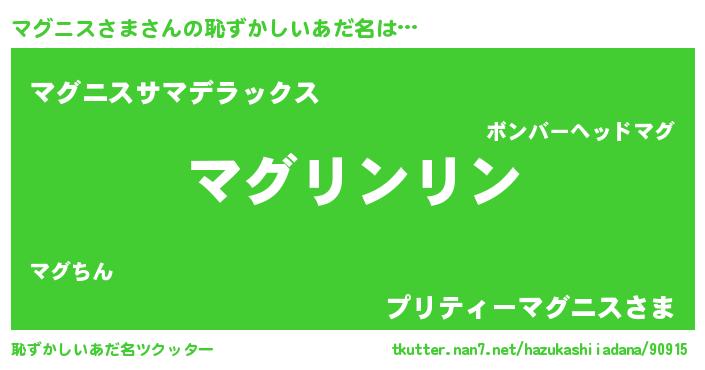 | 意味不明あだ名 | 『とにかく怪しいマグニスさま』 |