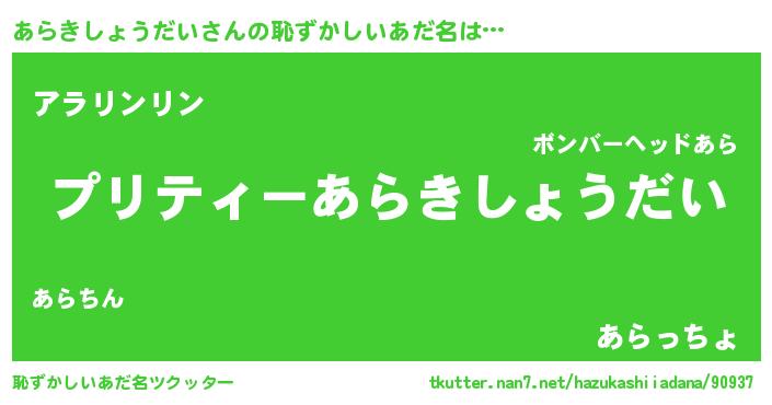 | 胡散臭い通販商品みたいなあだ名 | 『モテモテ間違いなし霊験あらたかなお札…その名も「あらきしょうだい」』 |