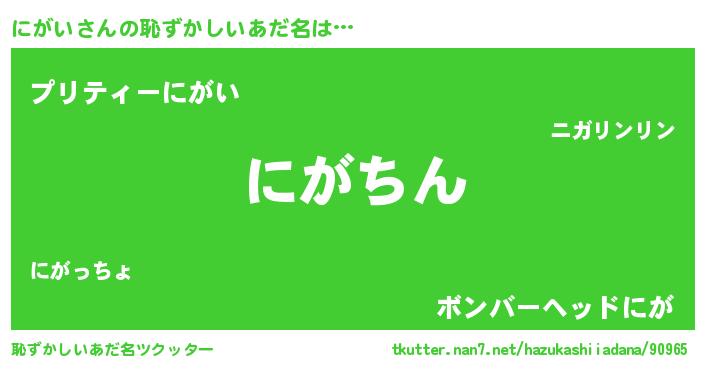 | 意味不明あだ名 | 『永久保存にがい』『ペロリンにがい』 |