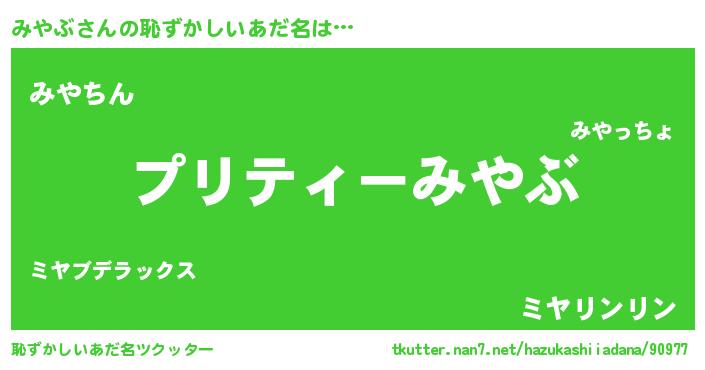 | ヘコむあだ名 | 『みやっふぃ~』『みやぶ(爆)』 |