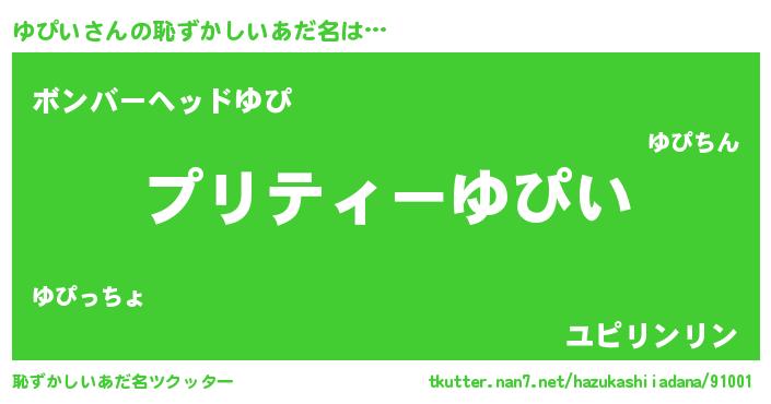 | 胡散臭い通販商品みたいなあだ名 | 『億万長者になれる霊験あらたかなお札…その名も「ゆぴい」』 |